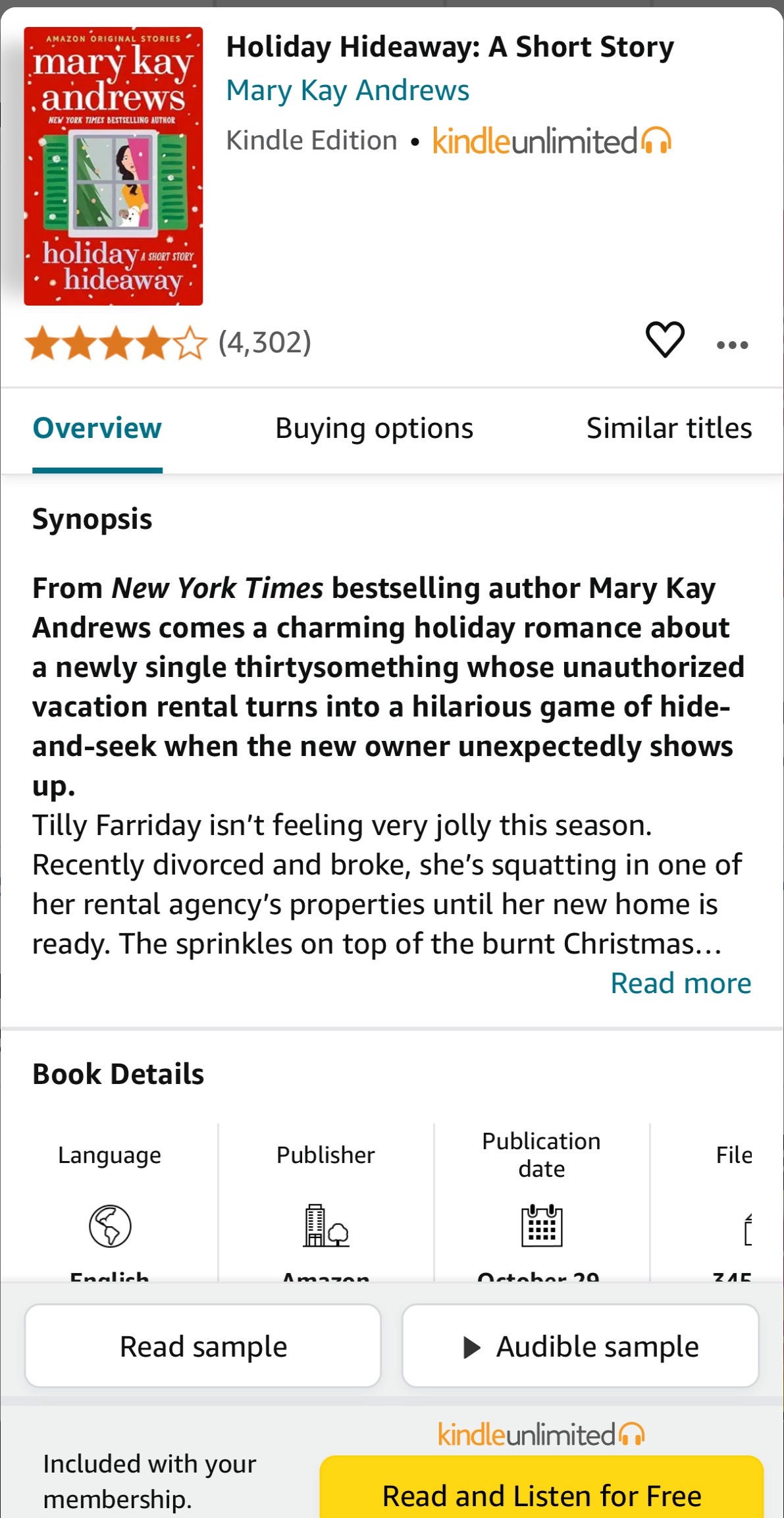 Then, I go in search of this book. Generally, the first place I look is on Kindle Unlimited to see if it has it. For some reason, if you cannot look up Kindle Unlimited books through the Amazon app. It's very annoying, but you just open a browser on your phone, type in “Kindle Unlimited books,” and it takes you to that homepage, where you can pin or bookmark that homepage so you have it on your phone internet browser all the time.