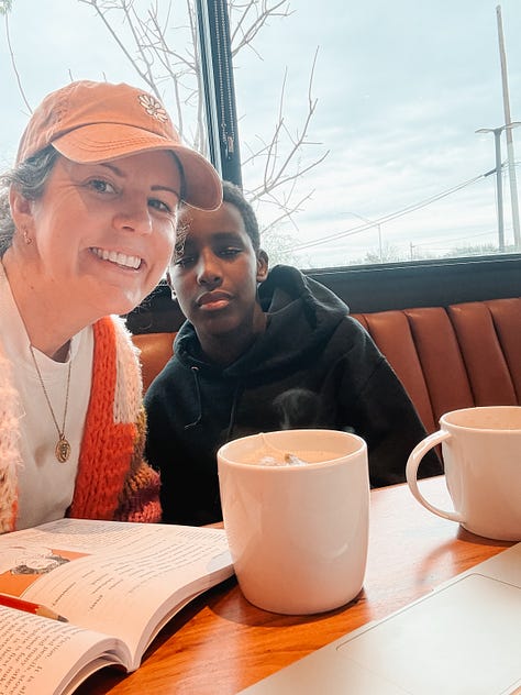 When I look back at photos from the month (I do this every month as part of my monthly rhythm - I make a monthbook on Chatbooks), I sense a theme. There were a lot of playdates with friends, meals prepped and made, school done at Starbucks, time chatting on the Tin Can, basketball games, family birthday parties, reading, organizing and decluttering, home projects, and an overnight getaway.