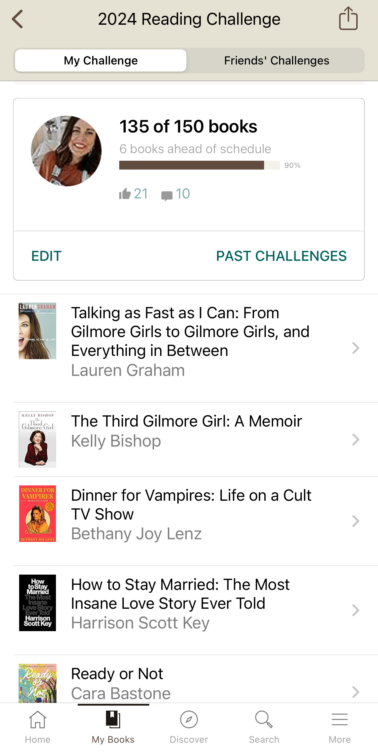 Currently, I’ve read 135 books in 2024, and I really feel like it's because I read on my Kindle. Because I use Libby and Kindle Unlimited, I have a wide variety of books that I want to read at all times. I don't force myself to finish terrible books. And it's fun to track my books alongside friends. I'm actually starting a book club this year, because I am obsessed with talking about books.