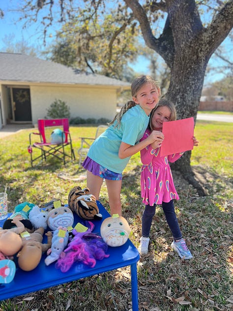 The “toy sale” adventure. My little girls (ages 8 & 4) decided to set up a front-yard toy sale, choosing stuffed animals and toys they no longer played with, making price tags, and creating signs. The whole process kept them busy, and I got to sit outside in my camping chair, reading my Kindle, while they ran their shop for two hours. An unexpected win!